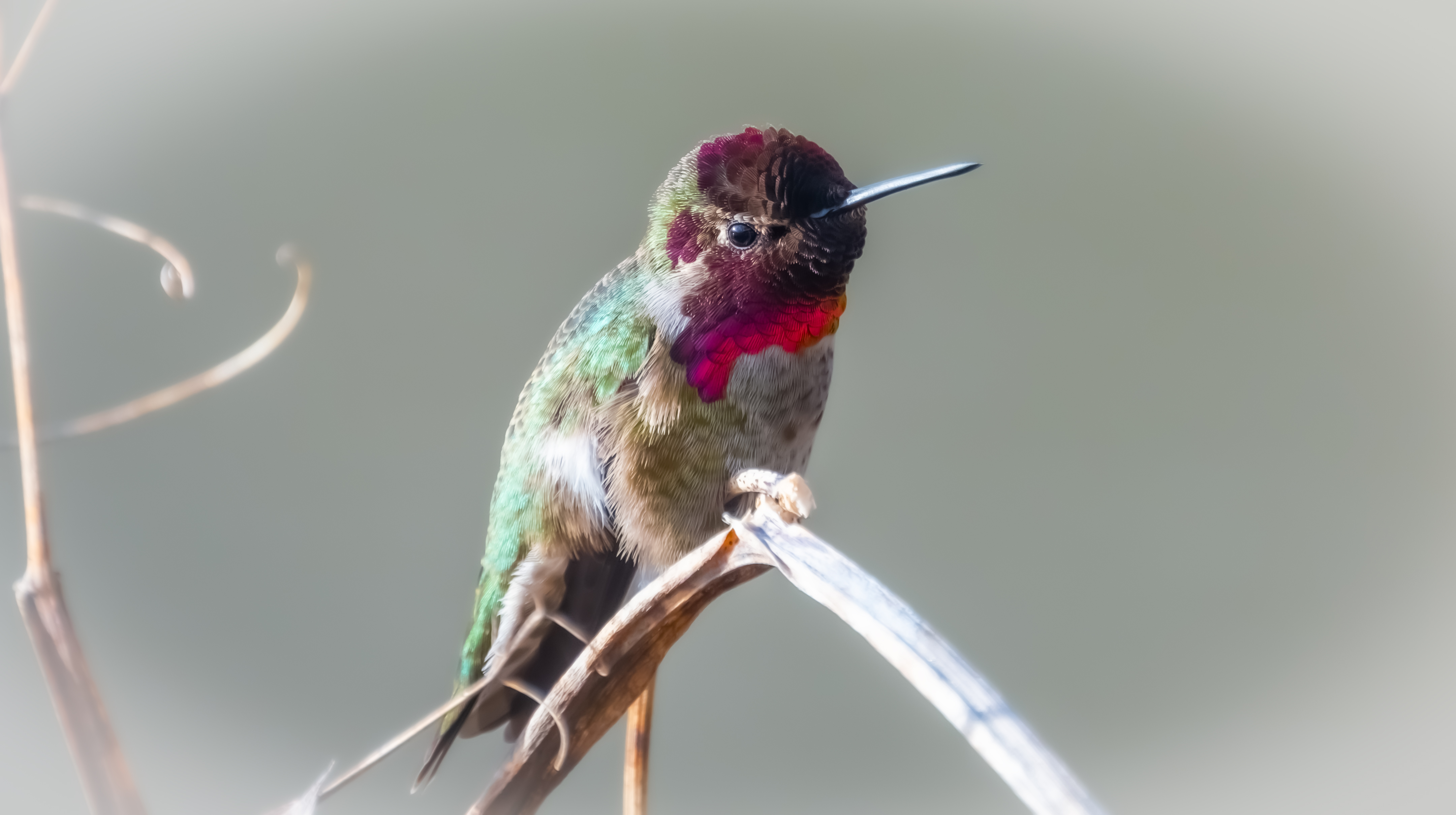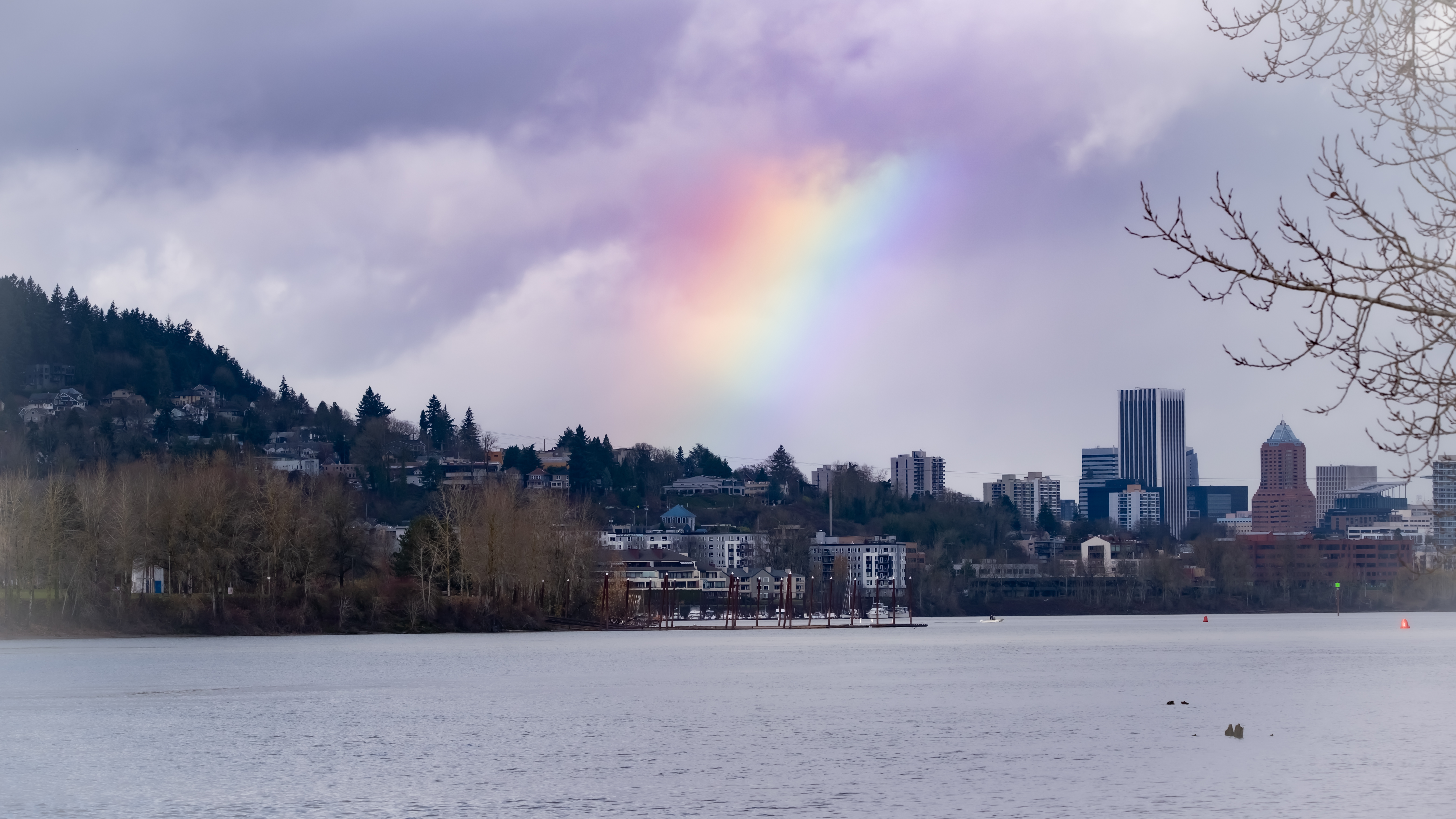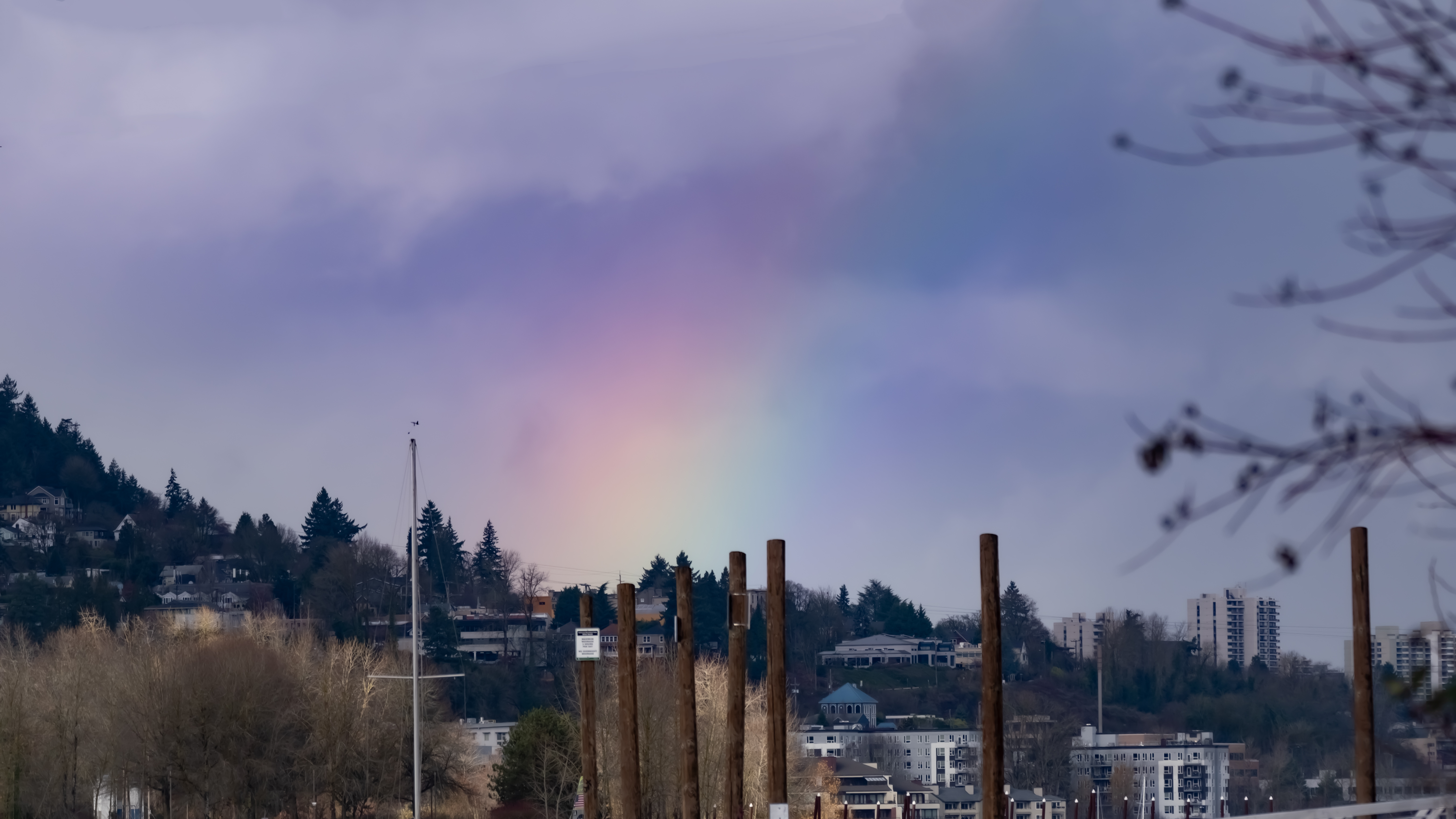 The winter can be dark and grey but today was an exception. There were some breaks in the clouds and I found a rainbow. There are people who chase storms in order to get footage of tornadoes. You will not find me chasing tornadoes but I seem to be always chasing storms in order to find the rainbow. So I consider myself a rainbow chaser. I succeeded today. I also found Anna’s Hummingbirds that display a rainbow of color.